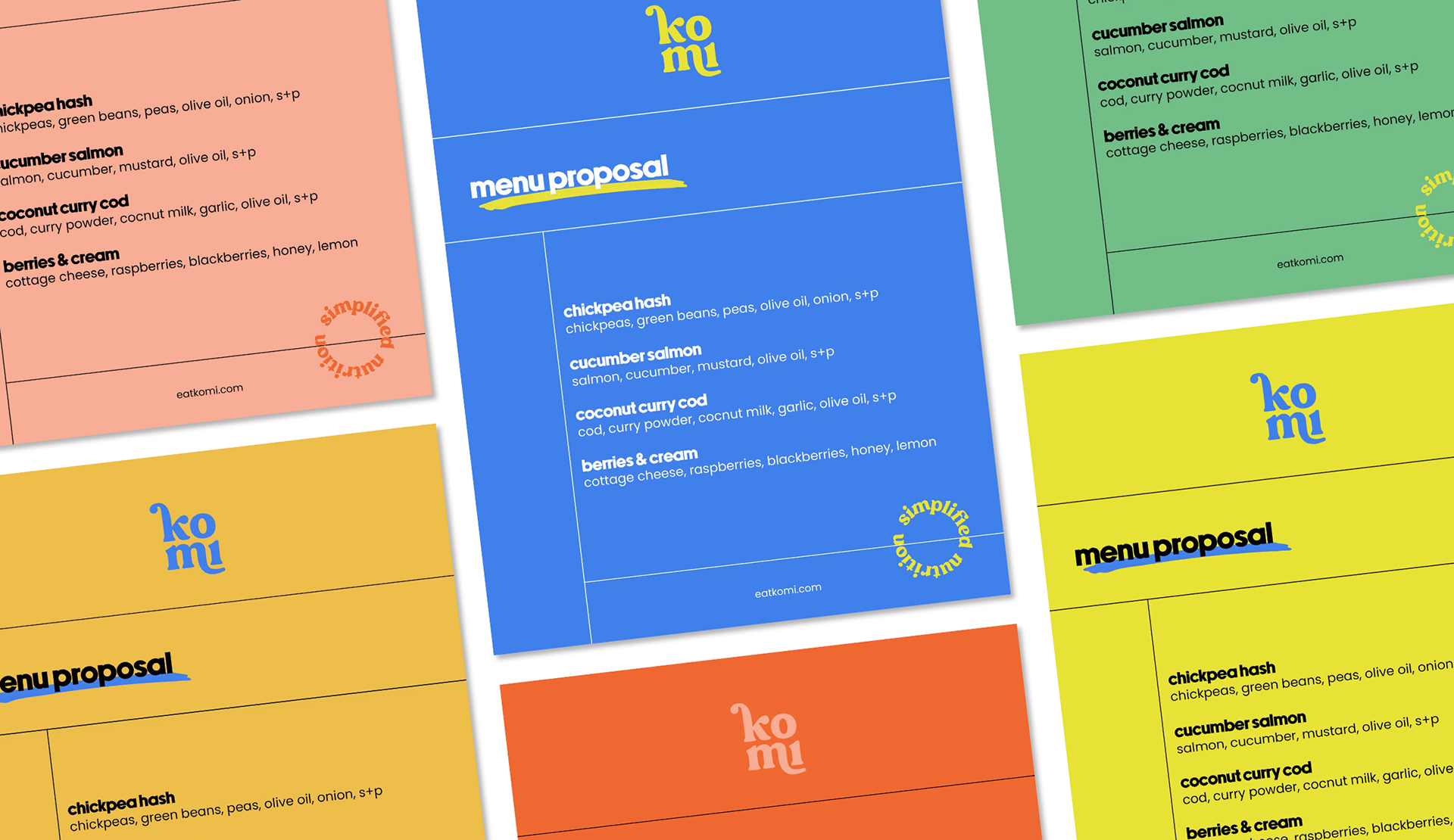 Komi offers personalized meal plans for kids, guided by registered dietitians and created by chefs. The brand was developed to balance clinical credibility with warmth and approachability, resulting in a visual identity that feels both trustworthy and parent-friendly. The system was designed to scale across web, social, app, and print as the product grows.